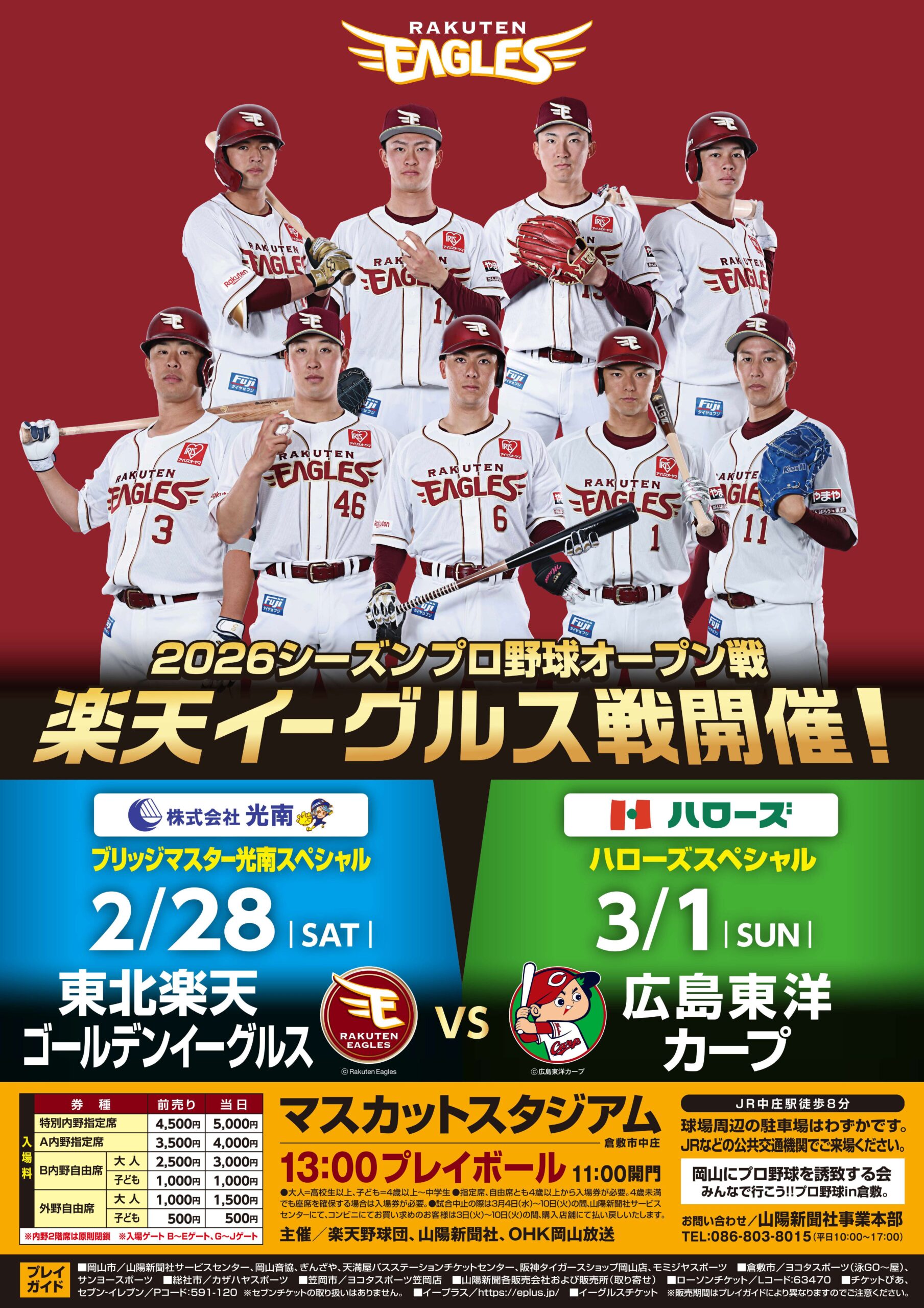 2026年プロ野球オープン戦 東北楽天ゴールデンイーグルス VS 広島東洋カープ